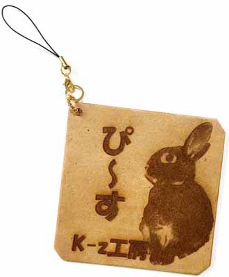 K-z工房のウサギ・ぴーすくんの写真を加工して、レーザー彫刻で刻印しました。