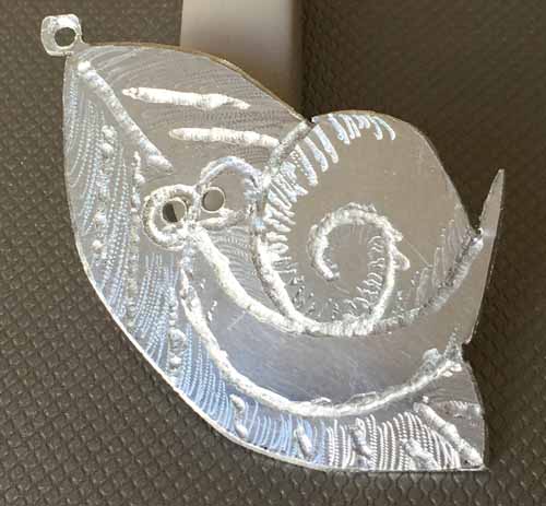 アルミ板に一筆書きのかたつむりを、ルーターで刻印しました。