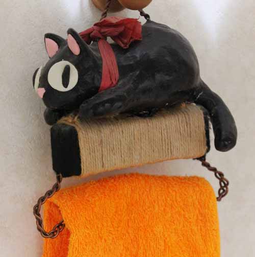 魔女の宅急便の黒猫ジジのタオル掛け。