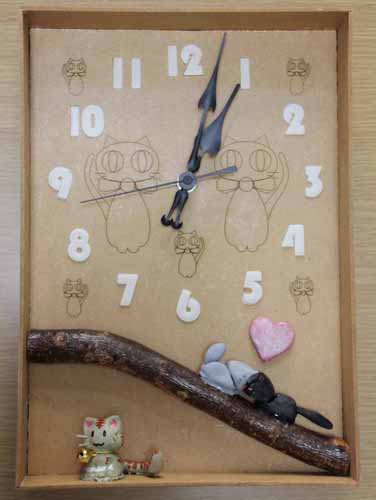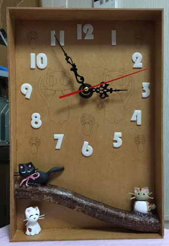 MDFにねこのレーザー彫刻を施した時計です。