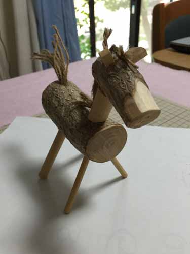 イチョウの剪定材で作った素朴な馬の置物です。