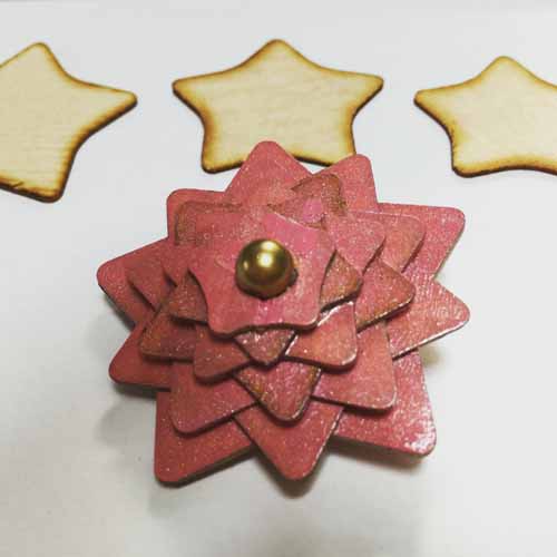 厚さ1mmのエゾマツを、レーザーでカットし、手裏剣にしました。