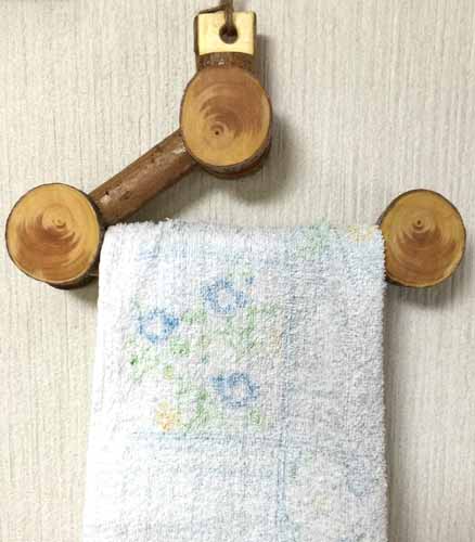 イチョウで作ったタオル掛け