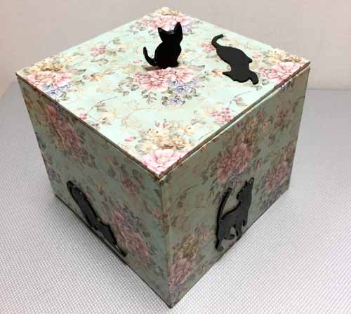 木の箱に友禅和紙を貼ったメイクボックス。