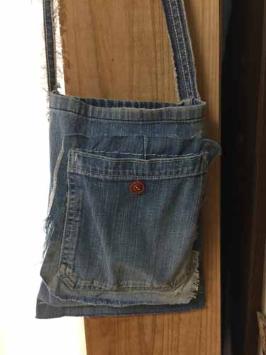 儚くなったジーパンをリメイクしたポーチ。