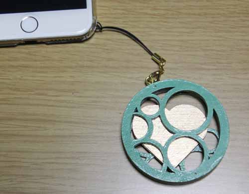 パソコンで設計して、レーザーで切り出したストラップを