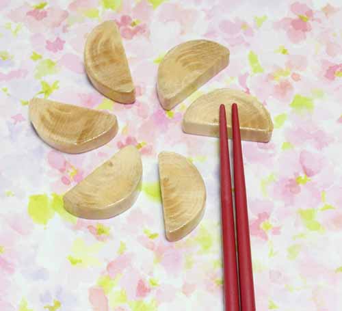 食品適合のニスを塗って仕上げた自然感たっぷりの箸置き。