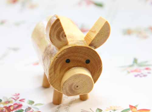 剪定材を使った小さな豚の置物です。