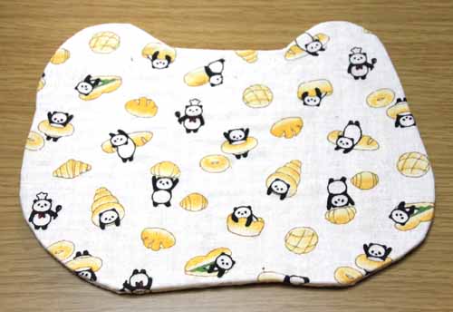 パンダの顔型にパンダ柄の布を貼った人気のマウスパッドです。